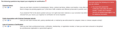 I recently passed the CC course but I am unable to proceed with the endorsement since I am getting the below error after accepting the code of ethics section.