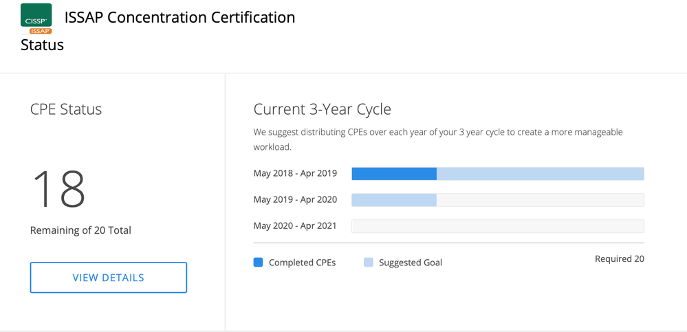 Additionally, for my ISSMP, which was my most recently earned concentration, the endorsement approval email stated the cycle start date as being the date I was awarded the ISSMP, so theoretically this would remove the possibility to apply CPEs retrospectively. I don't believe there's any difference between the ISSMP and ISSAP or ISSEP in relation to cycle dates, so the change in the email advising the cycle start dates just seems to be based on what I presume is updated guidance.